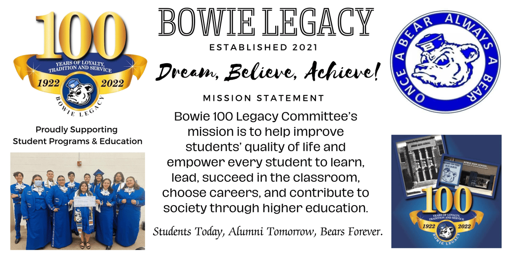 Thank you Bear Nation for your loyalty to Bowie High School and to our Bowie Legacy Foundation Board members for making a meaningful difference supporting the educational endeavors and lives of Bowie's finest legacy - our students & alumni, present and past.